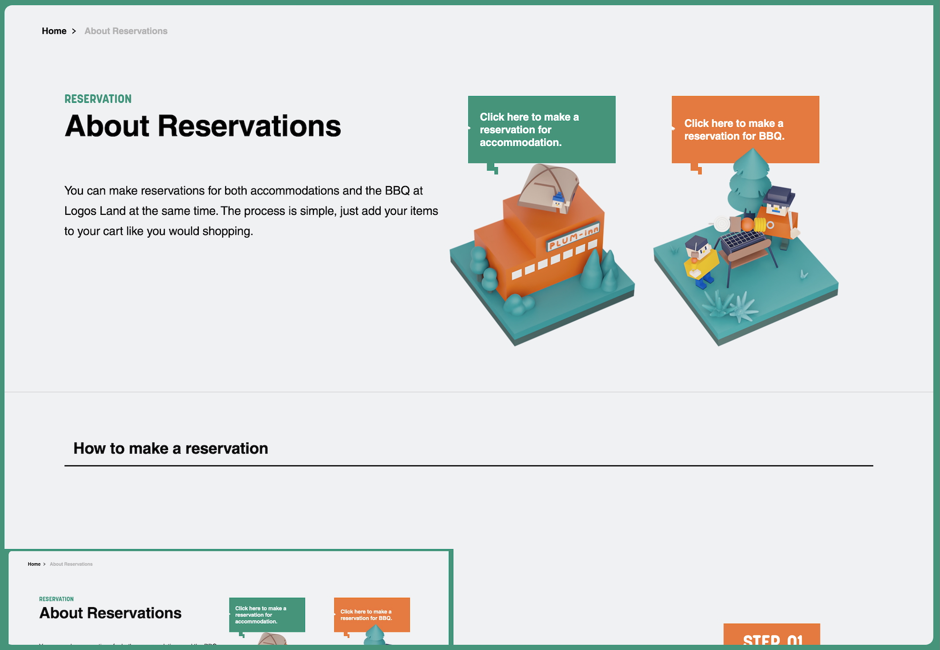 You can make reservations for both accommodations and the BBQ at Logos Land at the same time. The process is simple, just add your items to your cart like you would shopping.
