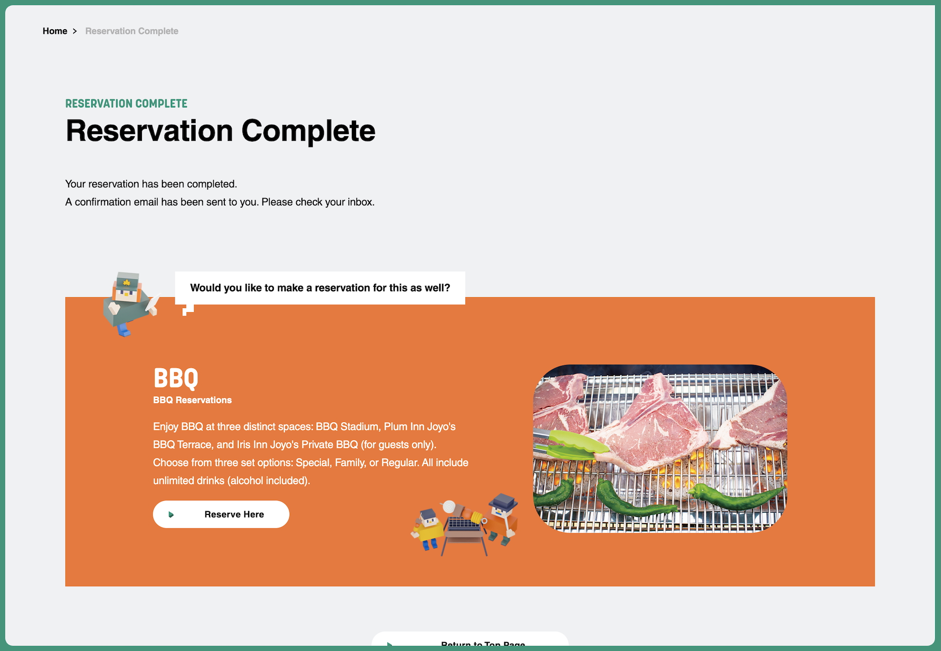 From the reservation page, choose whether you want to reserve a BBQ or a hotel.